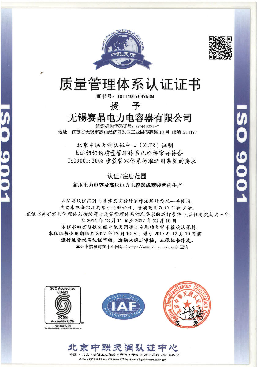 Wuxi Sun.King Power Capacitor Co., Ltd was established in May, 2008, as a 100% owned subsidiary to Sun.King Power Electronics Group, with a registered capital of 28 million US dollars. It is a high-tech enterprise focusing on technology research, product development, manufacture and sales of power capacitors, as well as related engineering services. The company has 120 employees, facilities covering an area of over 40,000 square meters and an annual production capacity of 20 million kVAR.